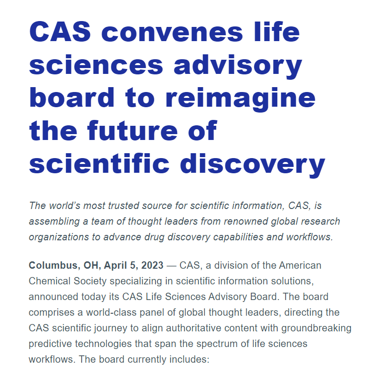 WCNDD Executive Director, Craig Lindsley, joins CAS Life Sciences Advisory Board. The board will guide the expanded CAS drug discovery journey to empower better decisions early in the drug discovery process. Read full press release at CAS convenes life sciences advisory board to reimagine the future of scientific discovery | CAS.